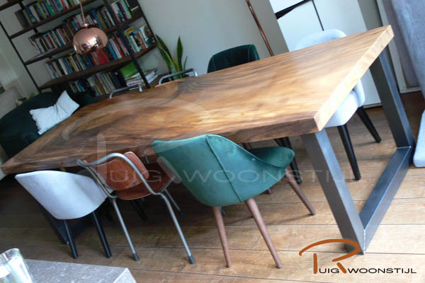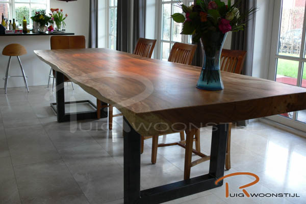 Al sinds jaar en dag selecteert Robbert handmatig de mooiste boomstambladen voor de klanten van RUIG woonstijl. Het aanbod varieert van heel zware bladen uit een stuk, tot moderner vormgegeven verlijmde tafels met onbekantrechte buitenzijde. “Suar” en “Lychee” bladen zijn afkomstig uit Afrika en Indonesië, ze bestaan uit een deel. Tegenwoordig is er ook veel vraag naar boomstambladen waarvan wij de buitenzijde strak afzagen. Strakkere Europese boomstambladen zijn vaak gemaakt uit Frans eiken, maar Robbert kan ook uw blad op maat maken naar wens. De prijs is enkel voor het blad, u kunt kiezen uit onze vele onderstellen onder het kopje onderstellen op maat.