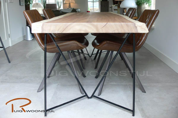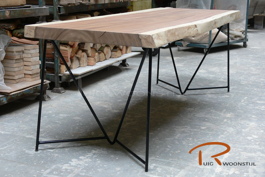 Vers van de schets, dit unieke massief metalen onderstel onderscheidt zich van velen en staat als een huis. De doorkijk verzorgd een luchtig & rank ontwerp terwijl de hoeken en lijnen stoer en excentriek zijn uitgezet. Combineer dit onderstel nu ook met strakke eikenhouten, beuken, noten of essen bladen of kies voor betoncire of sloophout of ook dit stoere boomstamblad draagt ie met gemak.. Het onderstel word gecoat in kleur naar wens.